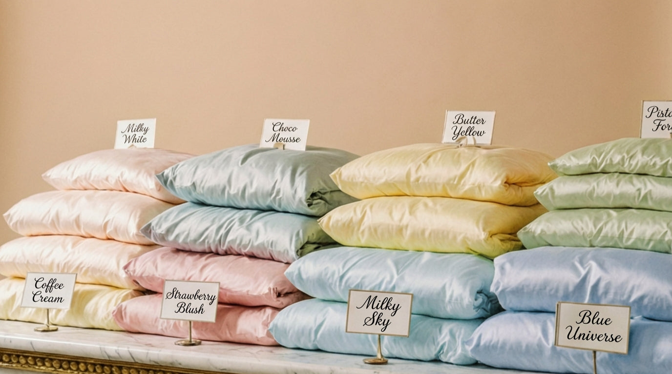 Unsere Farben sind aus dem Gedankenspiel einer süßen, zarten Panna-Notta-Eisdiele entstanden. Stell dir vor, du trittst ein: Gedämpftes Licht, cremige Nuancen und feine Töne, die wie kunstvoll angerichtete Desserts wirken – ruhig, edel, zum Genießen gedacht. Genau dieses Gefühl übersetzen wir in Stoff. Eine Palette, die Wärme, Weichheit und Raffinesse in dein Schlafzimmer bringt und dein Bett in eine Suite verwandelt, in der jede Nacht wie ein luxuriöser Aufenthalt beginnt.